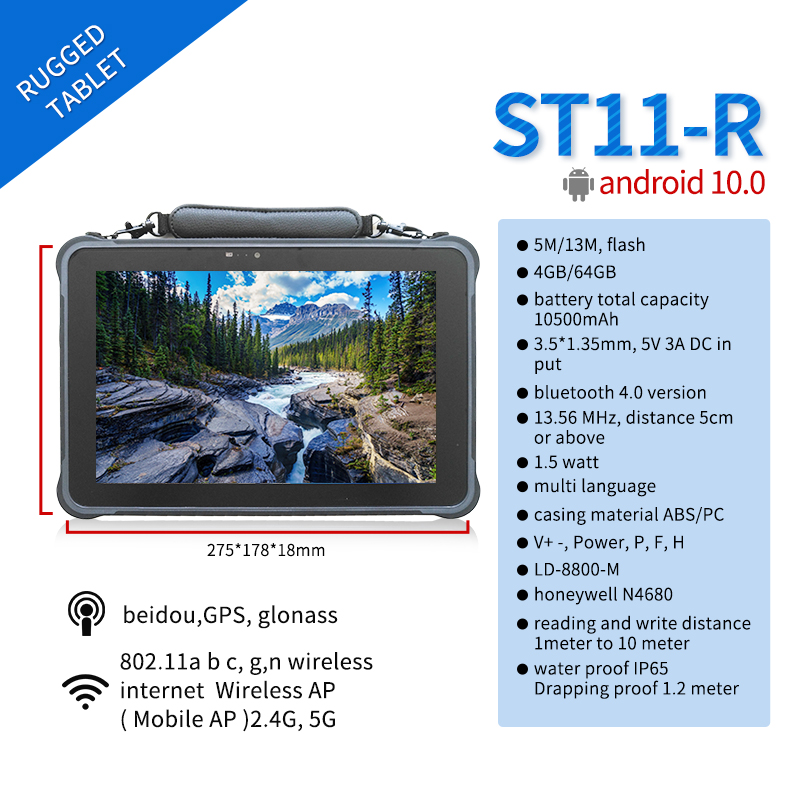The ST11-R Rugged Tablet is a durable, high-performance device designed for demanding environments, featuring a 10.1-inch display and robust connectivity options. Key specifications include: